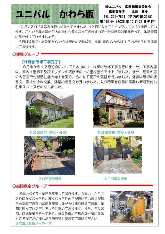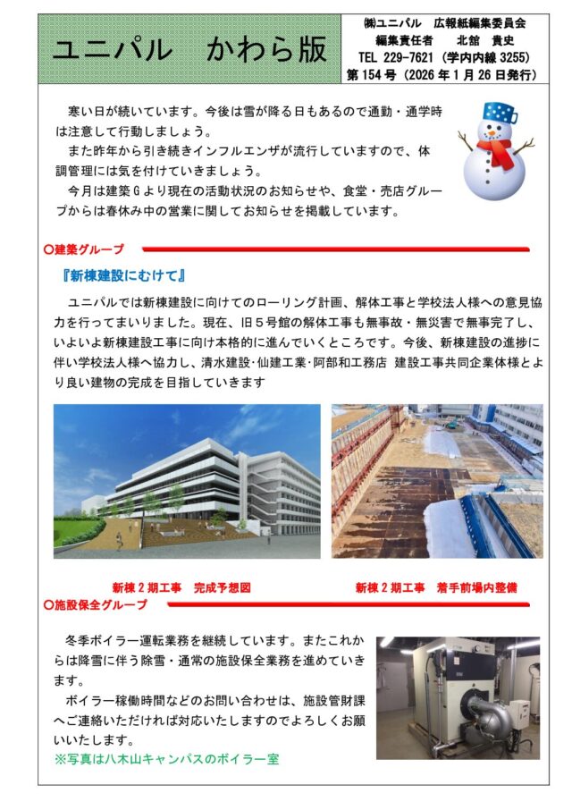 株式会社ユニパルは学校法人東北工業大学の100%出資の事業会社です。東北工業大学、仙台城南高校の施設の管理・保全や、学生・生徒・教職員の福利厚生のサポートをしております。