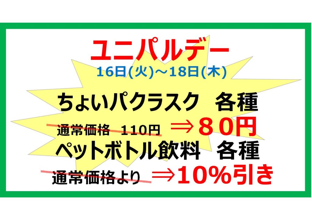 大学売店では12月16日(火)~18日(木)の日程で、ユニパルデーを開催します。