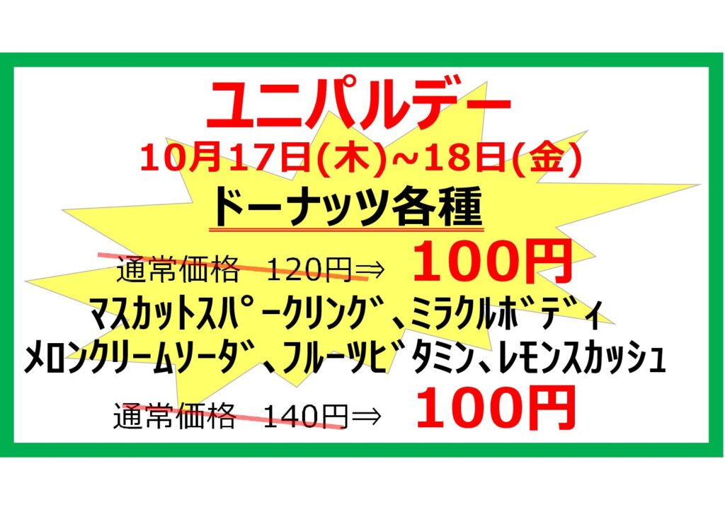 高校売店では10月16日(木)~17日(金)の日程で、ユニパルデーを開催します。